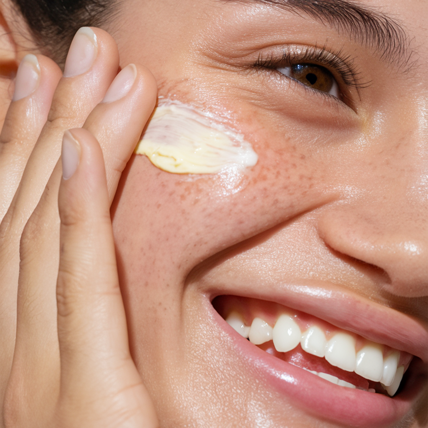 Blend between clean hands to create a soft, creamy texture. Continue massaging until the product turns silky smooth. Then, gently apply to your face and neck. Use morning and night.